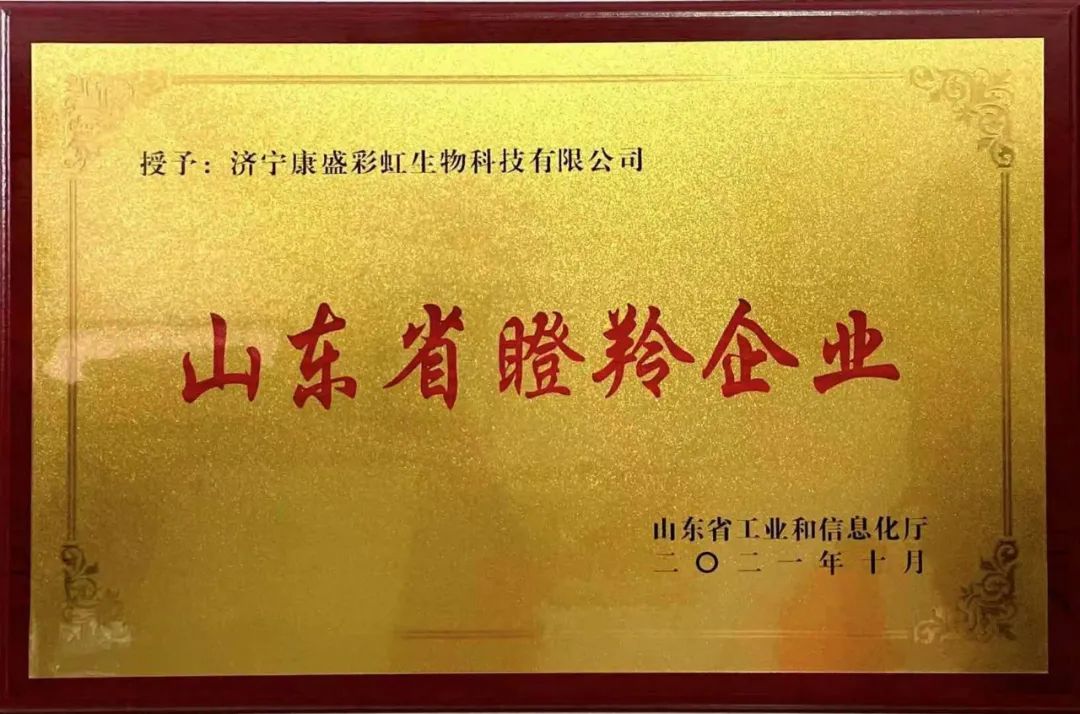 2021年10月27日,山東省工業(yè)和信息化廳公布了“山東省2021年度瞪羚企業(yè)”名單,濟寧康盛彩虹生物科技有限公司名列榜中。這一榮譽標志著康盛彩虹被認定為成長性好、具有跳躍式發(fā)展態(tài)勢的高新技術(shù)企業(yè)。