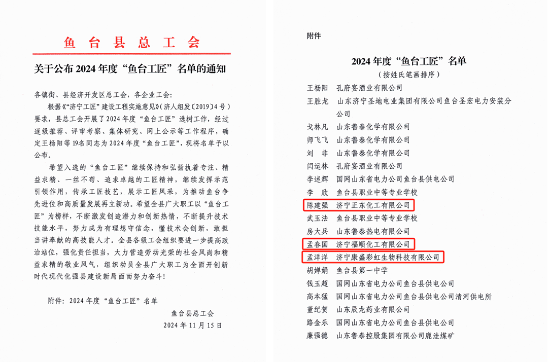 近日,魚臺縣正式公布了“魚臺工匠”評選的結果。康盛集團及子公司分別入選獲獎名單,這一榮譽不僅是對入選工匠個人技藝與職業(yè)精神的高度認可,更是對康盛集團整體技術實力和人才培養(yǎng)體系的充分肯定。